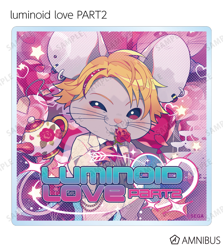 神鳴、luminoid love PART2、χρόνος、TOXIC、Wing:No.6223、Crystallize、Oracle、MegiddØ、Crossmythos Rhapsodiaの楽曲ジャケットイラストをアクリルコースターに仕上げました。