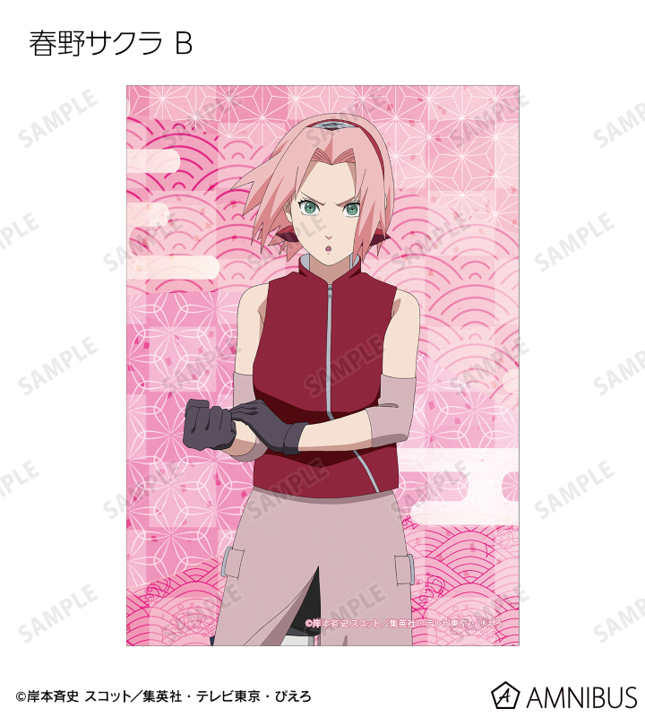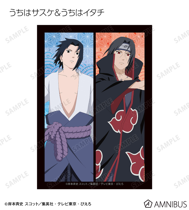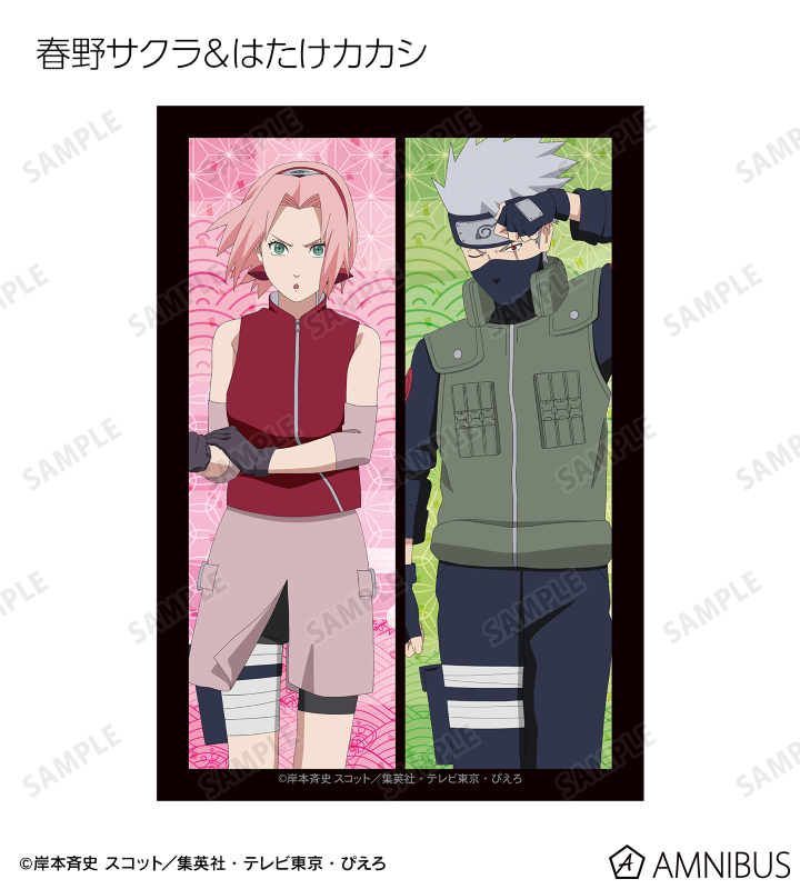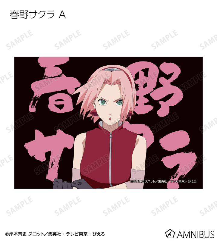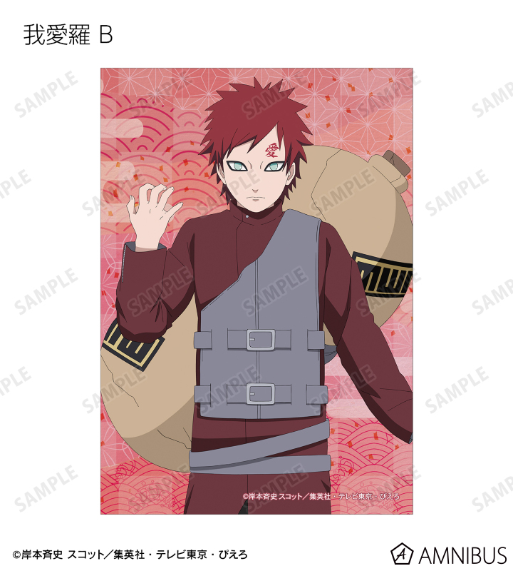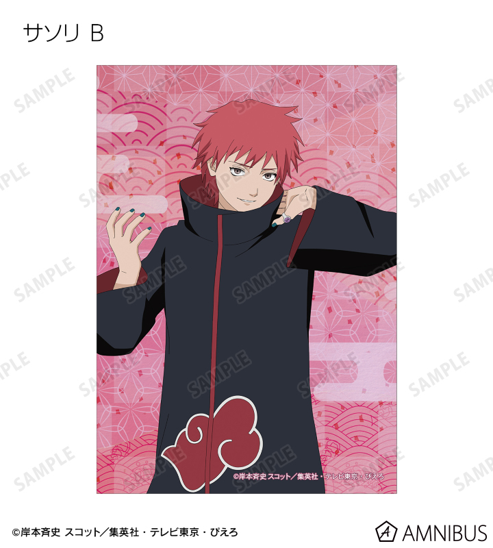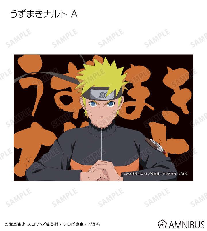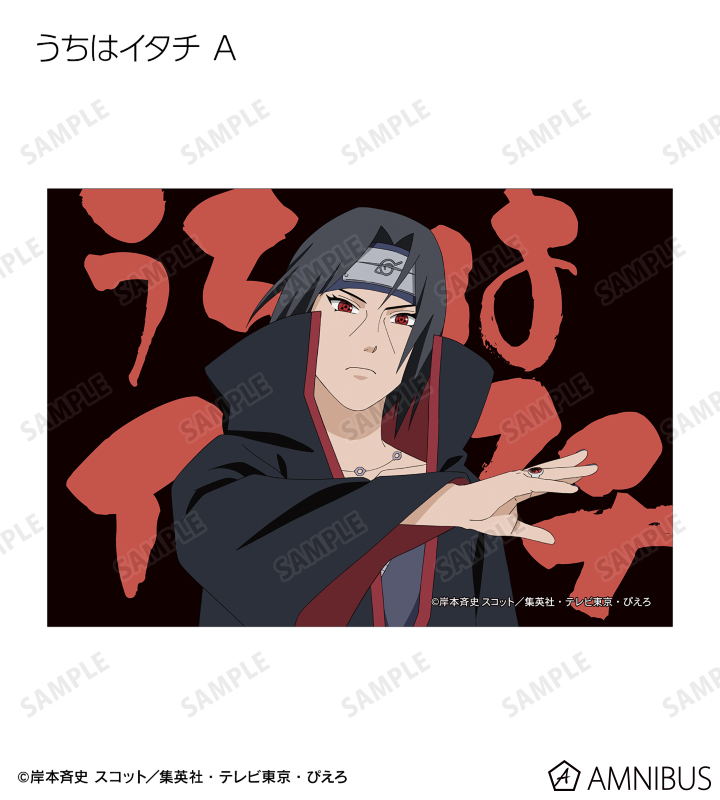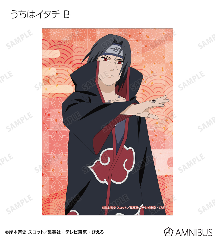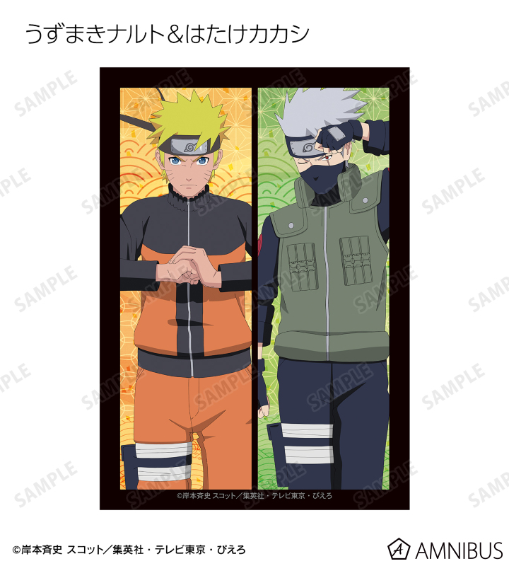 うずまきナルト、うちはサスケ、春野サクラ、はたけカカシ、日向ネジ、我愛羅、うちはイタチ、デイダラ、サソリの描き下ろしイラストをブロマイドに仕上げました。