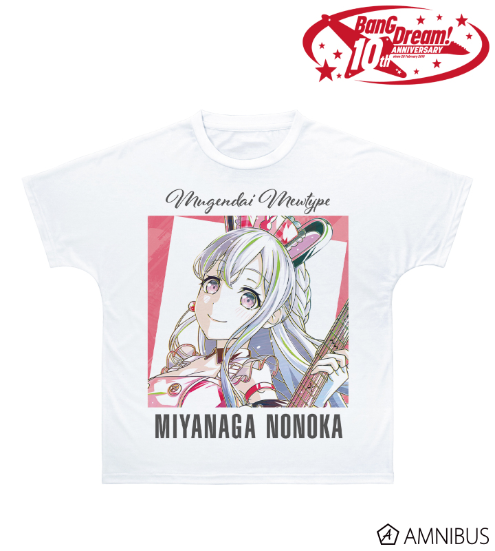 宮永 ののかのイラストを新たなタッチで魅力的に表現し、バンドカラーと組み合わせてフルグラフィックTシャツに仕上げました。