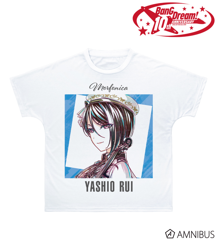 八潮 瑠唯のイラストを新たなタッチで魅力的に表現し、バンドカラーと組み合わせてフルグラフィックTシャツに仕上げました。