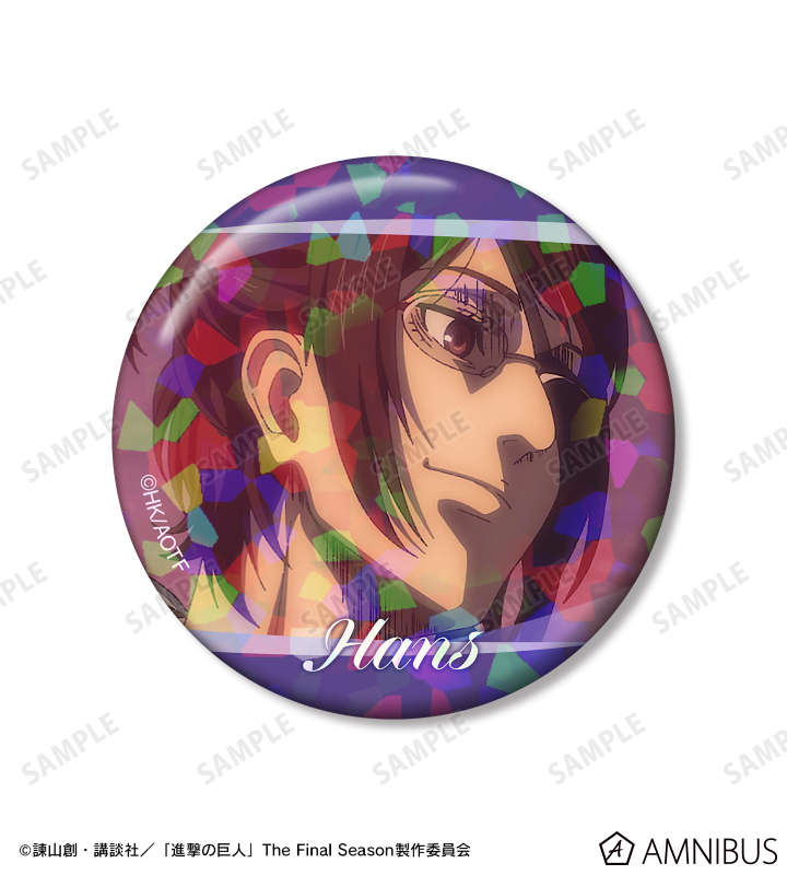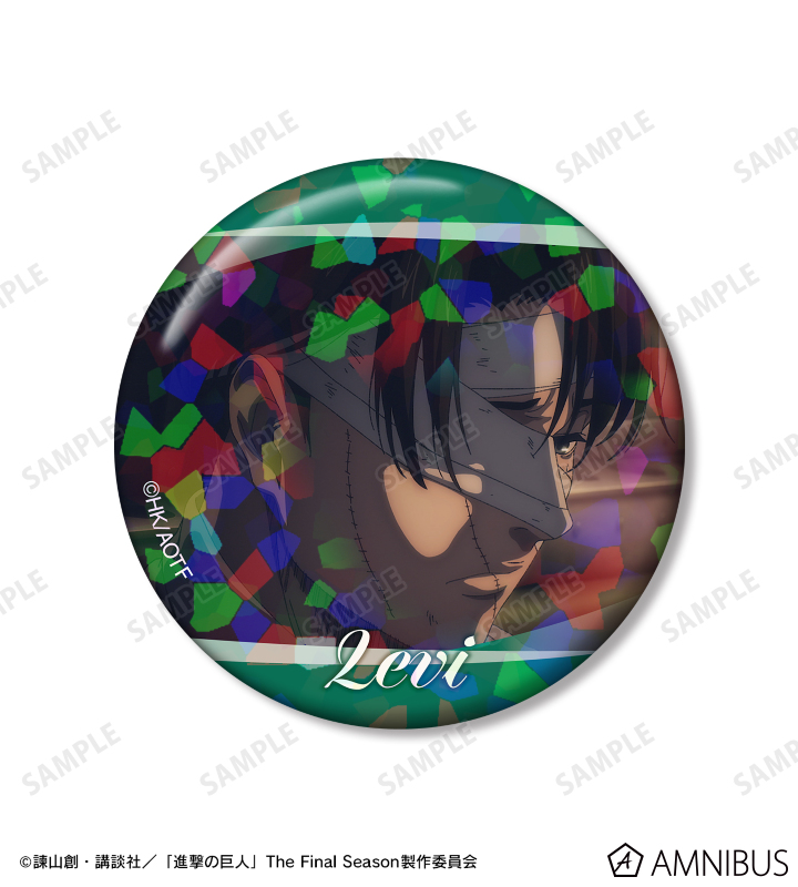 ハンジ、リヴァイの印象的なシーンをホログラム加工を施した缶バッジ3個セットに仕上げました。