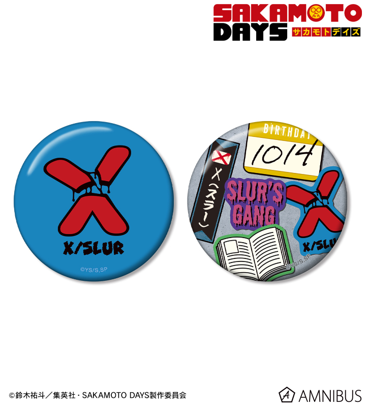 TVアニメ『SAKAMOTO DAYS』から日常で使える統一感をテーマにしたデザインシリーズ「ar-Unity」のアイテム「X(スラー) ar-Unity モチーフ 缶バッジ2個セット」の登場です。