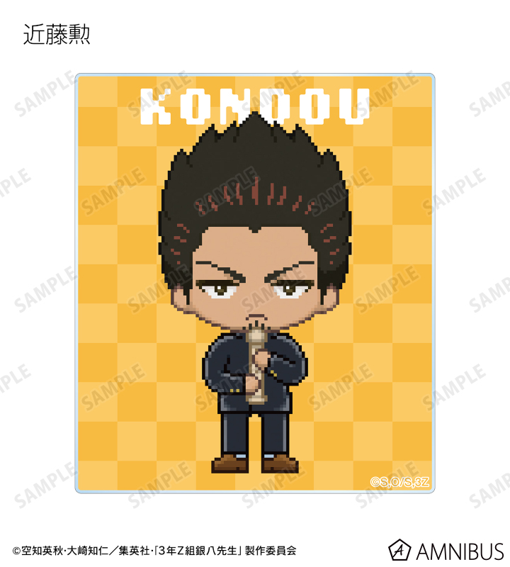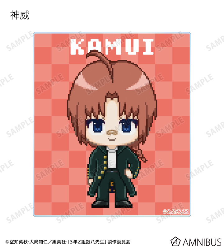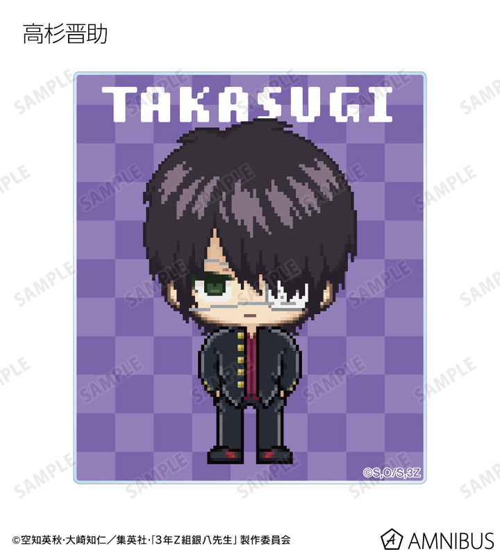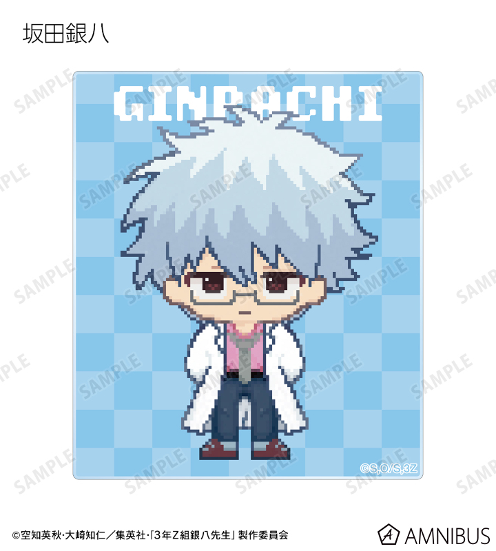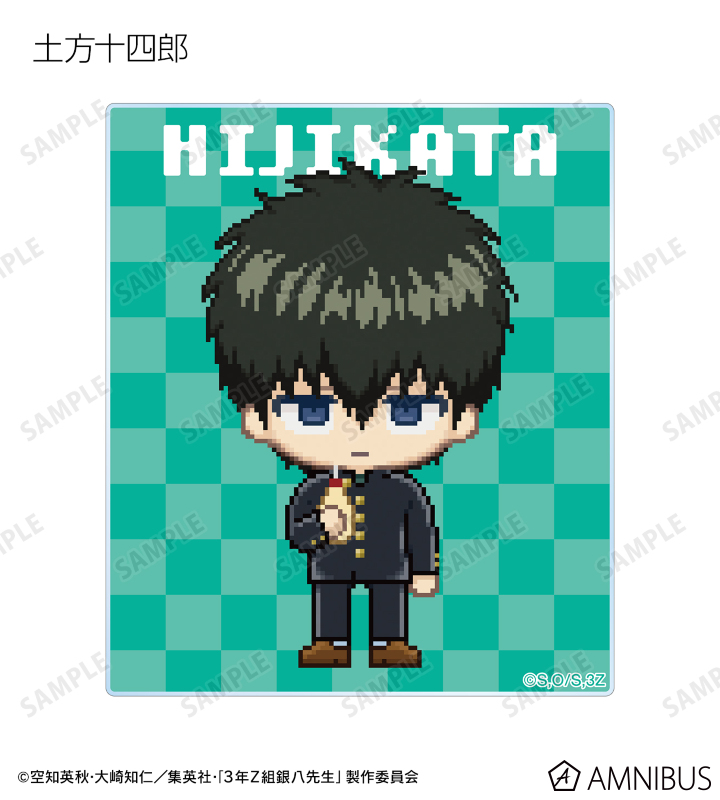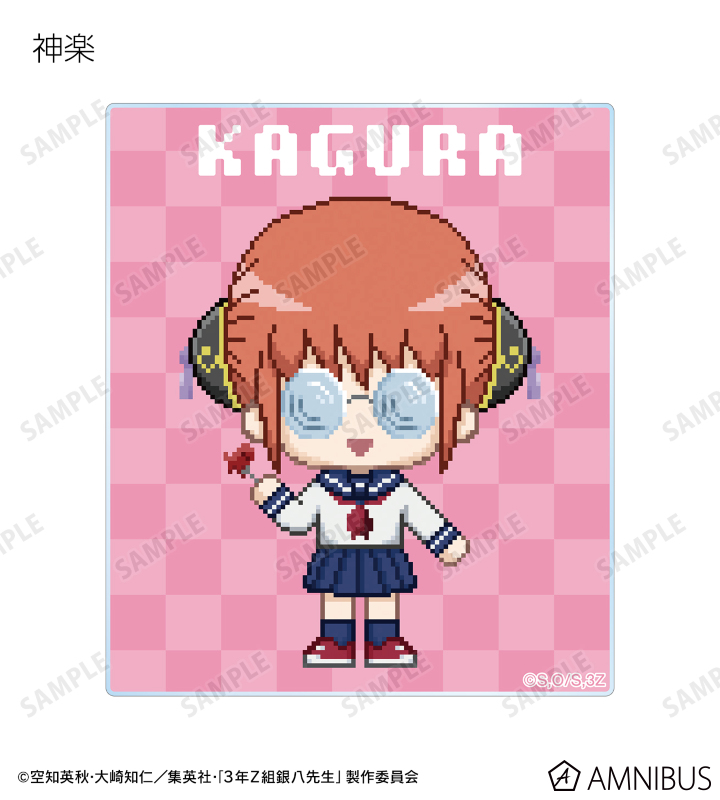 坂田銀八、志村新八、神楽、定春、近藤勲、土方十四郎、沖田総悟、桂小太郎、エリザベス、高杉晋助、神威、阿伏兎をドットイラストで魅力的に表現し、アクリルカードに仕上げました。
