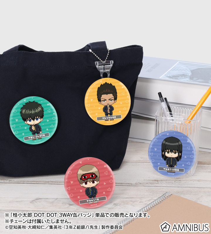 TVアニメ『3年Z組銀八先生』より、DOT DOT 3WAY缶バッジの登場です。