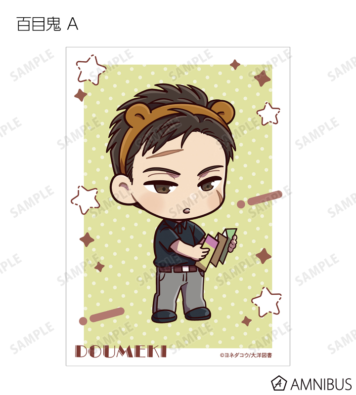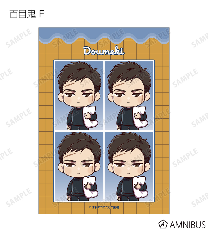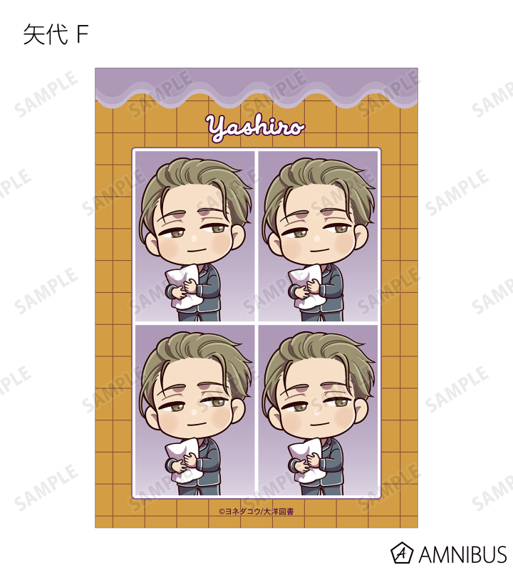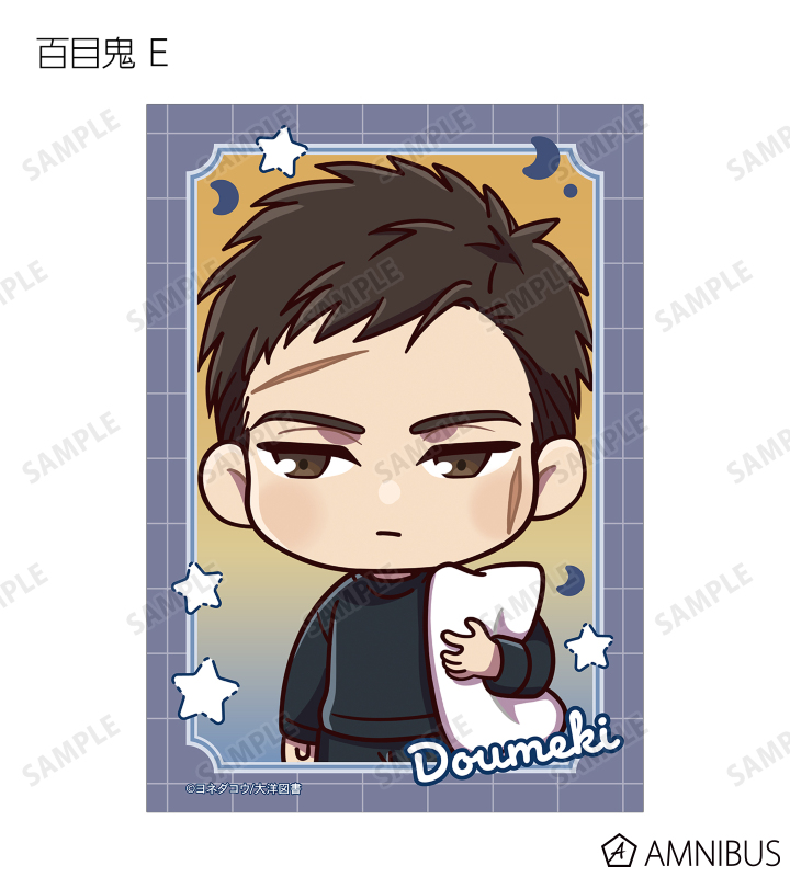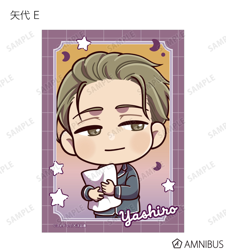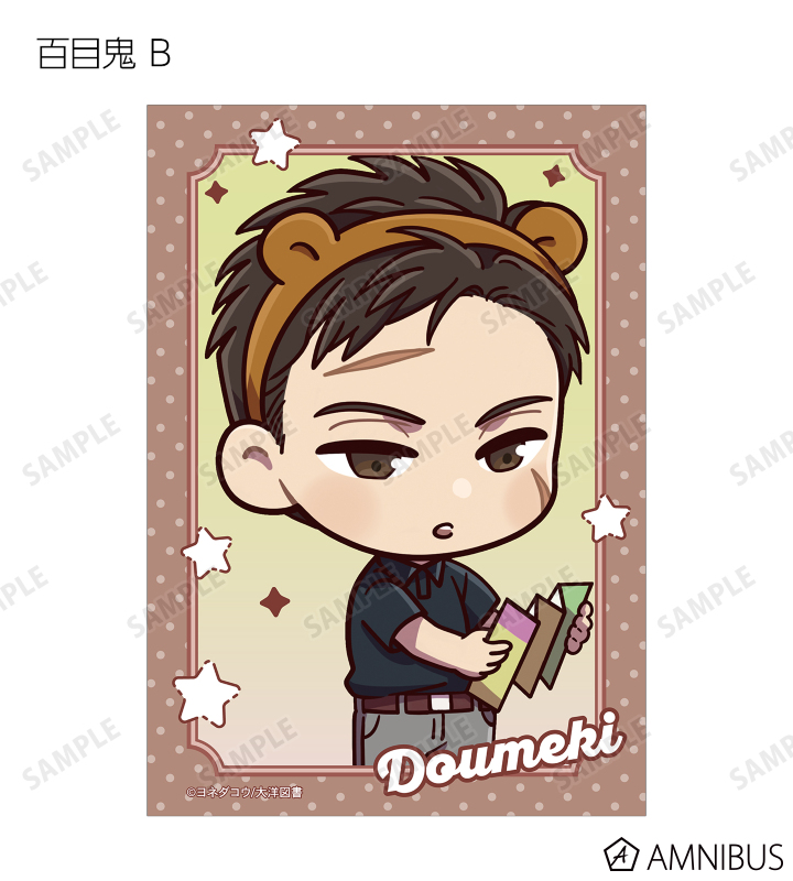 矢代、百目鬼の描き起こしちびキャライラストをメインにデザインし、ブロマイドに仕上げました。