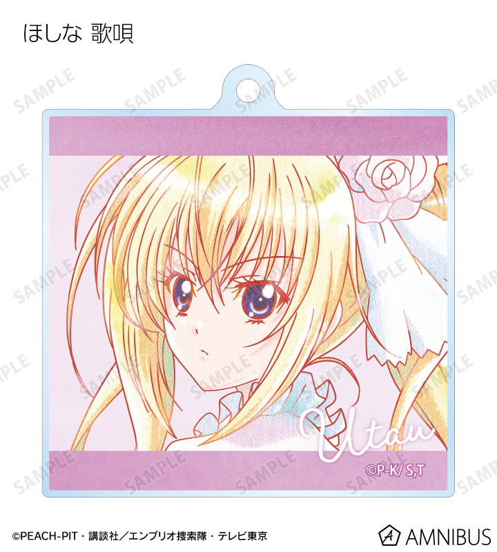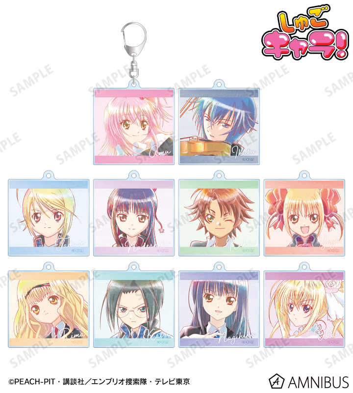 日奈森 あむ、月詠 イクト、辺里 唯世、藤咲 なでしこ、相馬 空海、結木 やや、真城 りま、三条 海里、藤咲 なぎひこ、ほしな 歌唄のイラストを新たなタッチで魅力的に表現し、アクリルキーホルダーに仕上げました。