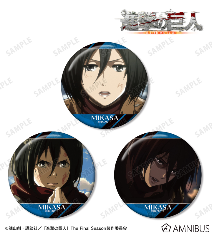 ミカサの印象的なシーンを缶バッジ3個セットに仕上げました。
