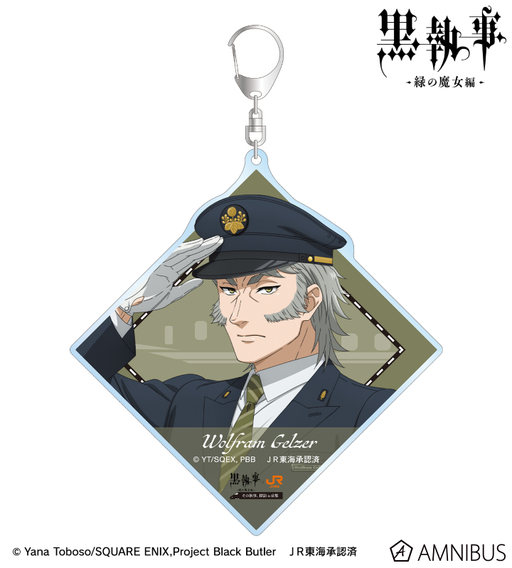 アニメ『黒執事 -緑の魔女編-』×「推し旅/JR東海」のコラボレーションアイテム「描き下ろし ヴォルフラム 駅員ver. BIGアクリルキーホルダー」の登場です。