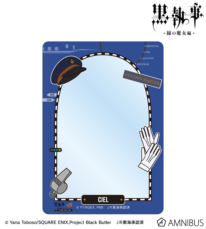 アニメ『黒執事 -緑の魔女編-』×「推し旅/JR東海」のコラボレーションアイテム「シエル・ファントムハイヴ 駅員モチーフ B8硬質ケース」の登場です。