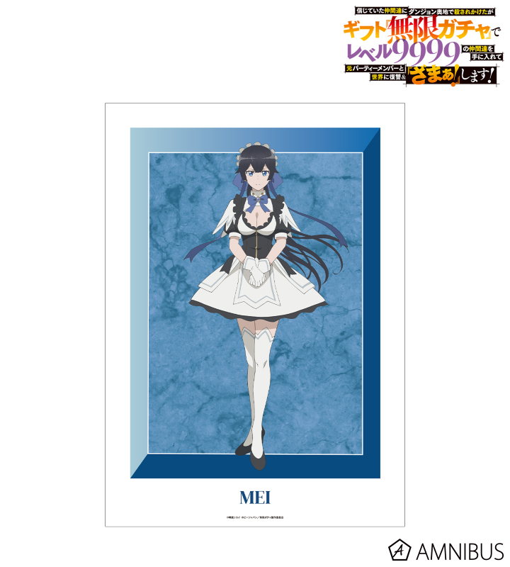 TVアニメ『信じていた仲間達にダンジョン奥地で殺されかけたがギフト『無限ガチャ』でレベル9999の仲間達を手に入れて元パーティーメンバーと世界に復讐&『ざまぁ!』します!』より、A3マット加工ポスターの登場です。