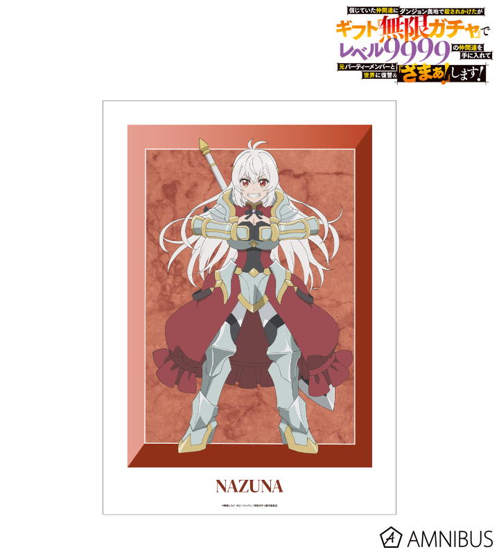 TVアニメ『信じていた仲間達にダンジョン奥地で殺されかけたがギフト『無限ガチャ』でレベル9999の仲間達を手に入れて元パーティーメンバーと世界に復讐&『ざまぁ!』します!』より、A3マット加工ポスターの登場です。