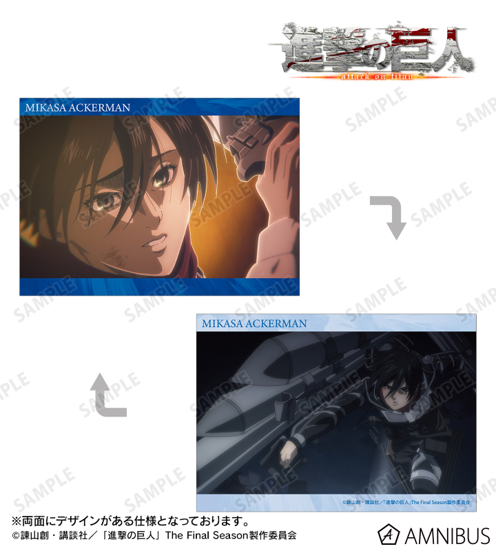 ミカサの印象的なシーンを両面印刷のイラストカードに仕上げました。