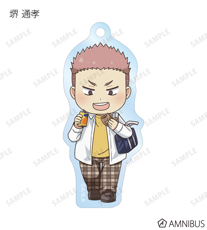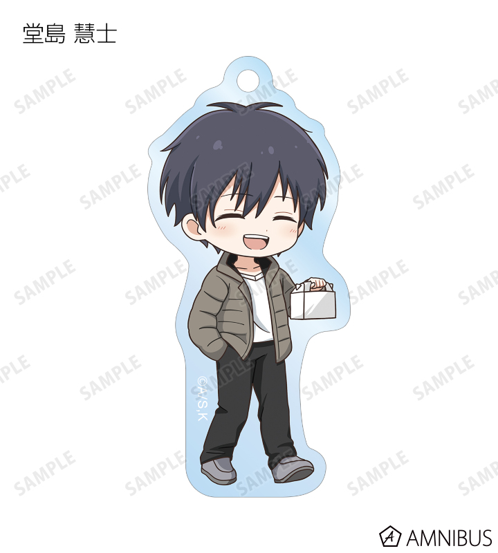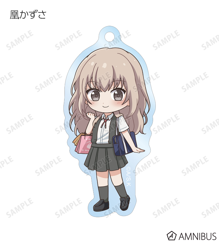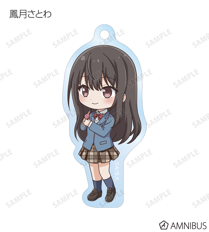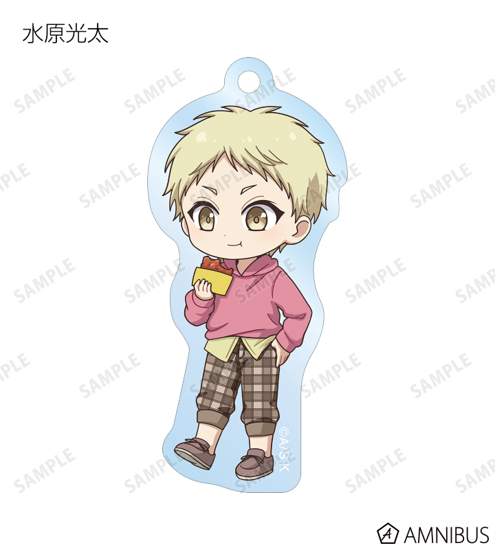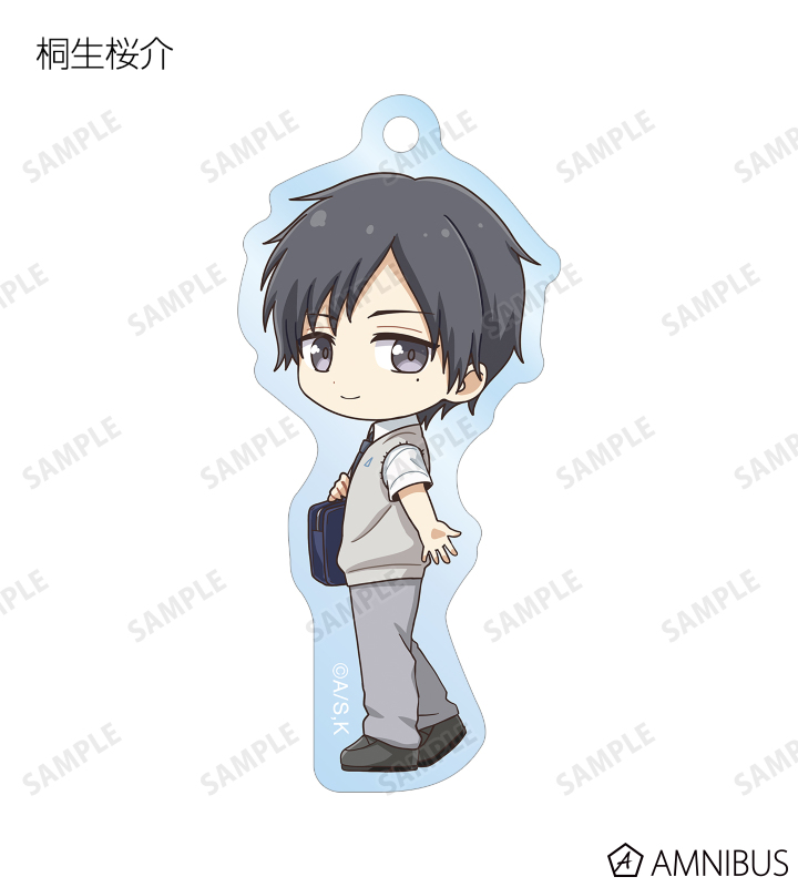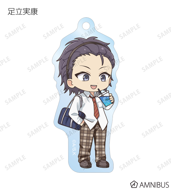 久遠 愛、倉田武蔵、鳳月さとわ、高岡哲生、足立実康、堺 通孝、水原光太、来栖妃呂、滝浪涼香、凰かずさ、花村 史、桐生桜介、神崎澪、堂島 晶、堂島 慧士の描き起こしちびキャライラストをメインにデザインし、アクリルキーホルダーに仕上げました。