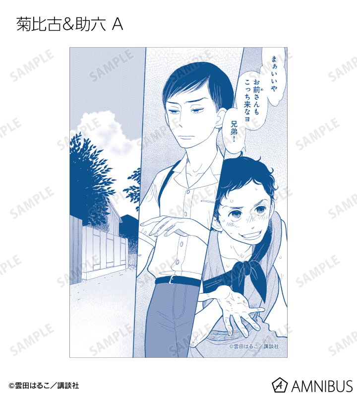 菊比古、助六、与太郎、八雲、小夏の原作コマイラスト、カラーイラストをブロマイド5枚セットに仕上げました。