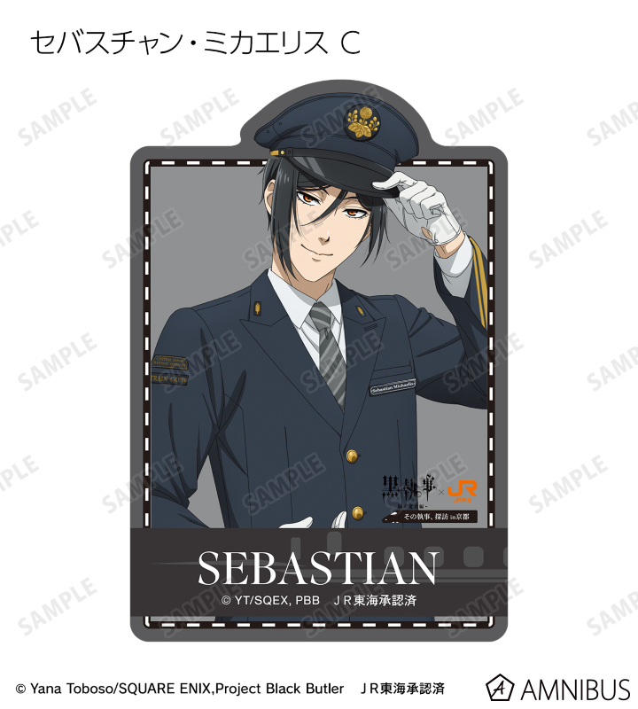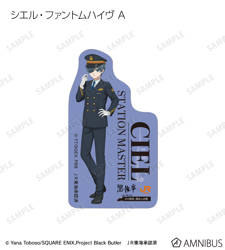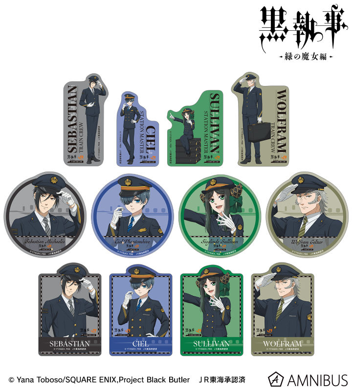 アニメ『黒執事 -緑の魔女編-』×「推し旅/JR東海」のコラボレーションアイテム「描き下ろし 駅員ver. トレーディングダイカットステッカー」の登場です。