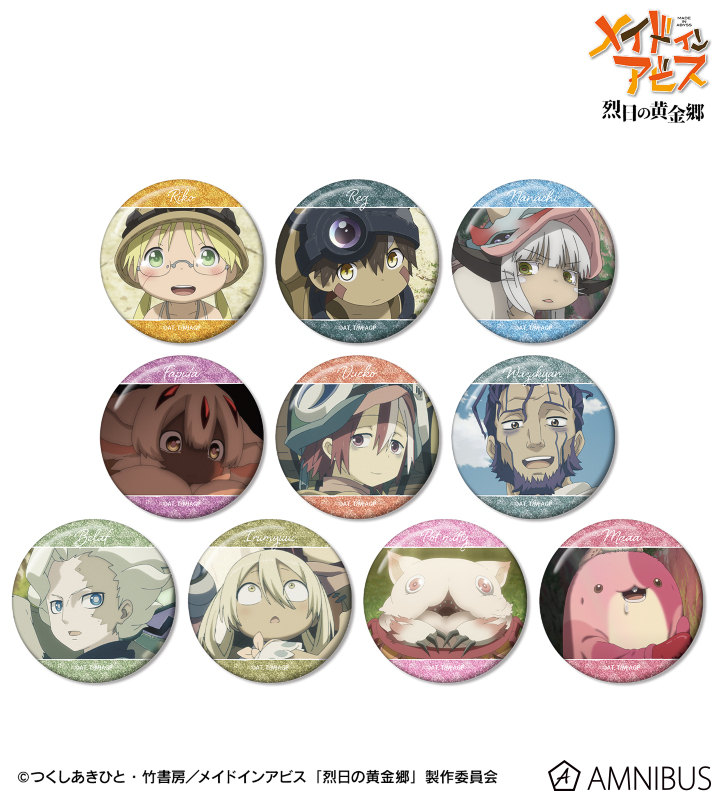 『メイドインアビス 烈日の黄金郷』より、トレーディンググリッター缶バッジの登場です。