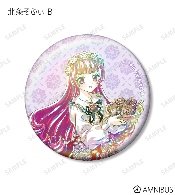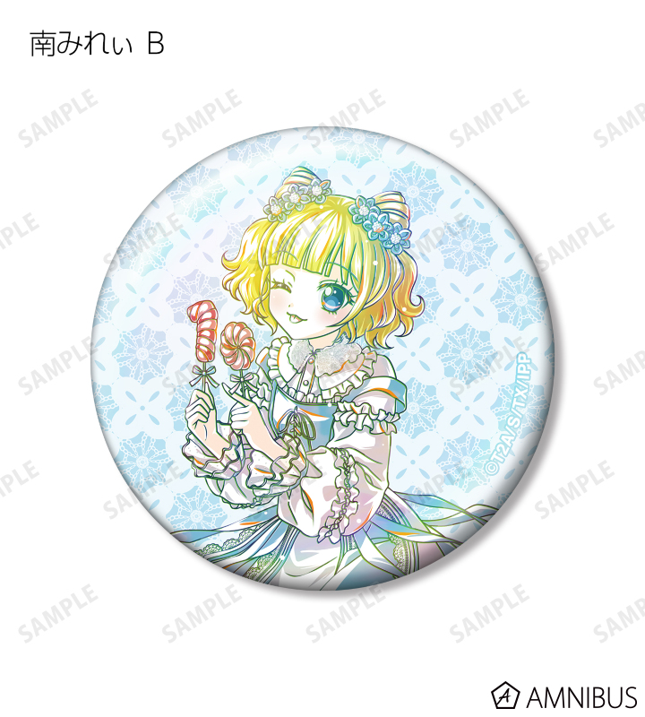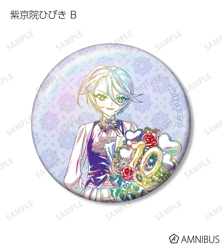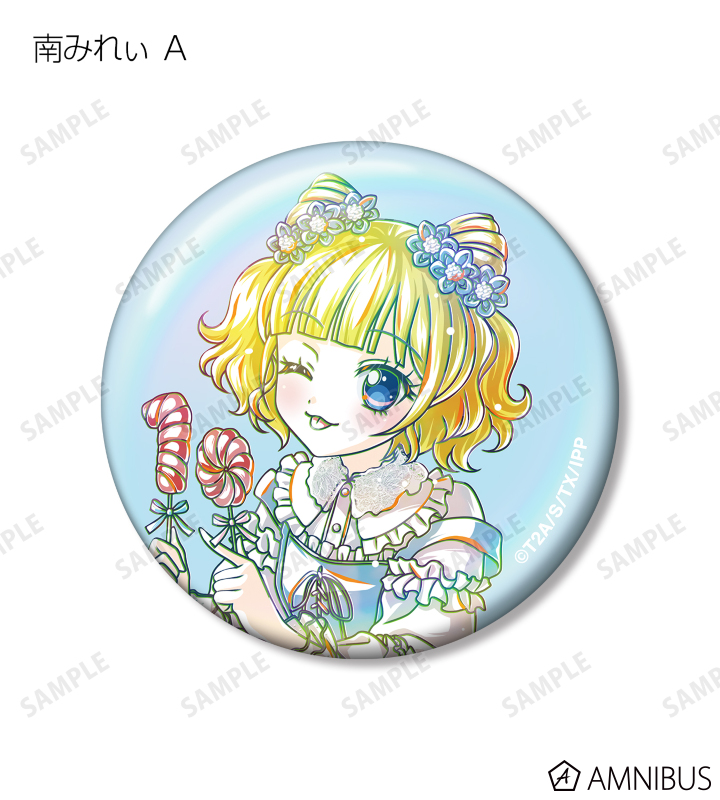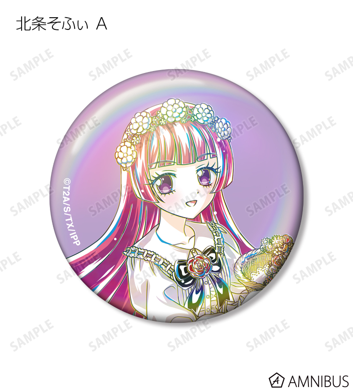 真中らぁら、南みれぃ、北条そふぃ、東堂シオン、ドロシー・ウェスト、レオナ・ウェスト、真中のん、紫京院ひびきのイラストを新たなタッチで魅力的に表現し、オーロラ加工を施した缶バッジに仕上げました。