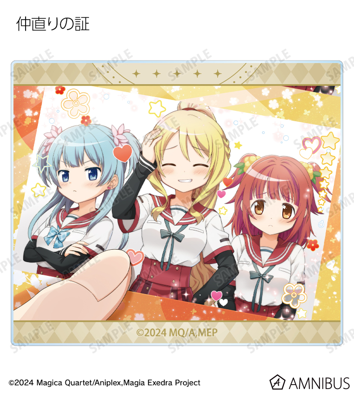 「なりゆきダンスコーチ」、「人魚姫の夢」、「たまにはいつもと違うメガネで」、「いつか上がる雨」、「仲直りの証」、「懐かしくて愛おしい」、「八雲探偵事務所へようこそ」、「またね、ほむらちゃん」、「あなたは私が守るから」、「はじめまして、ひさしぶり」、「催眠術でさらに最強!!」、「DANCE☆MAGICA」のポートレイトイラストをアクリルカードに仕上げました。