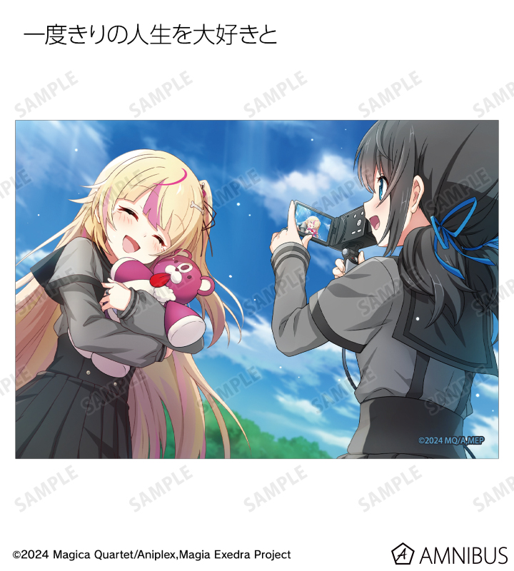 鹿目まどか、暁美ほむら、美国織莉子、呉キリカ、五十鈴れん、天音月夜、天音月咲、愛生まばゆ、里見灯花、柊ねむ、アリナ・グレイのキオクイラスト、「手作りケーキに挑戦中」、「アルバムを通して想う未来」、「臨時共同戦線!」、「夢の中の出会い」、「疑惑のセブンティーン☆彡」、「わたしだって魔法少女だもん!」、「あちしとかこと冒険」、「一度きりの人生を大好きと」のポートレイトイラストをブロマイドに仕上げました。