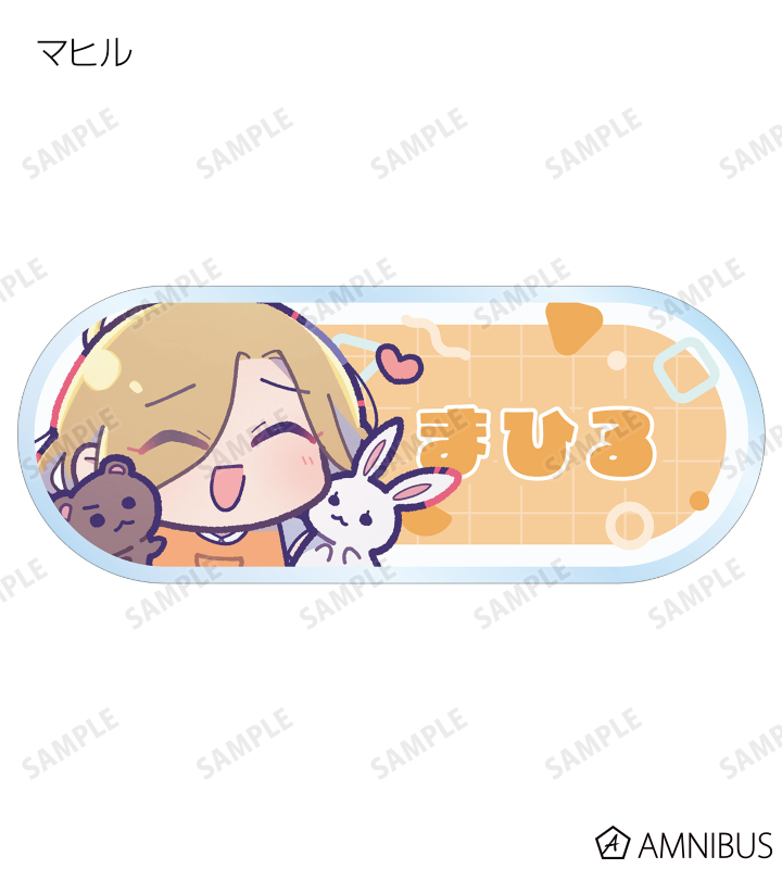 エス、ジャッカロープ、ハルカ、ユノ、フータ、ムウ、シドウ、マヒル、カズイ、アマネ、ミコト、コトコの描き下ろしイラストをアクリルネームプレートに仕上げました。