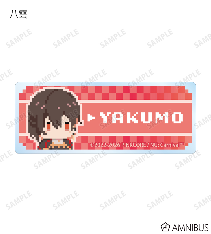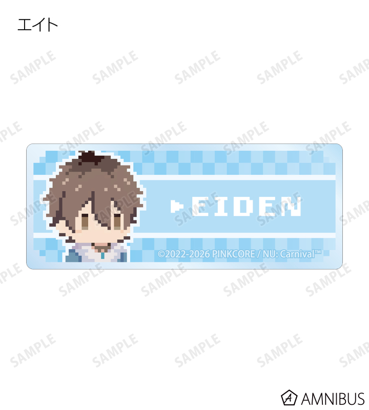 エイト、エスター、モルフィス、八雲、エドモンド、オリビン、ケシー、玖夜、ガル、ブレイド、エンテン、レイ、トパ、親父の描き起こしドット風ちびキャライラストをメインにデザインし、アクリルネームプレートに仕上げました。