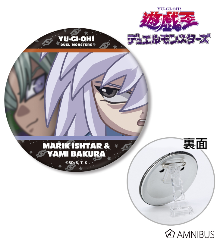 マリク・イシュタール、闇バクラの印象的なシーンをそのままデフォルメで再現し、3WAY缶バッジに仕上げました。