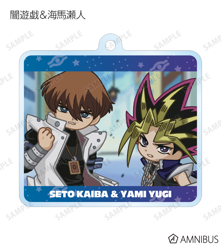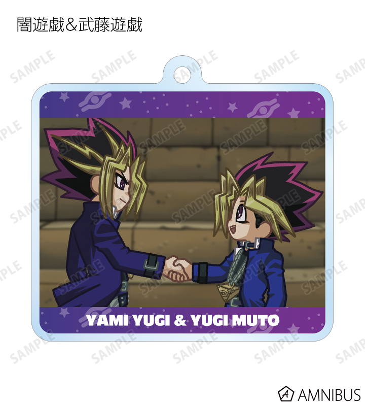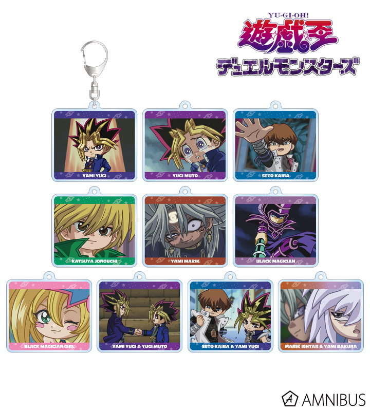 闇遊戯、武藤遊戯、海馬瀬人、城之内克也、闇マリク、ブラック・マジシャン、ブラック・マジシャン・ガール、マリク・イシュタール、闇バクラの印象的なシーンをそのままデフォルメで再現し、アクリルキーホルダーに仕上げました。