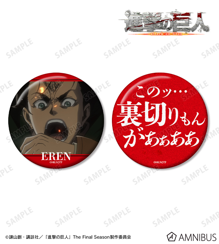 エレンの印象的なシーン、セリフを缶バッジ2個セットに仕上げました。