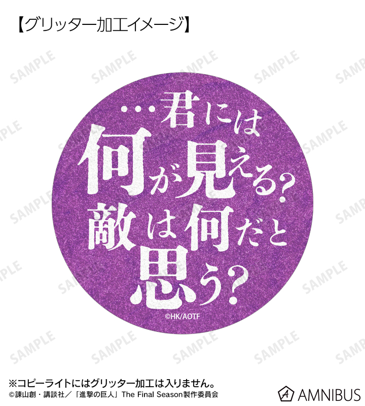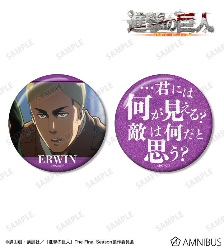 TVアニメ『進撃の巨人』より、75mm缶バッジ2個セットの登場です。
