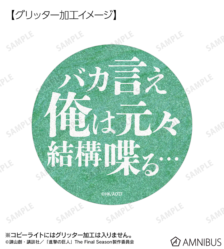TVアニメ『進撃の巨人』より、75mm缶バッジ2個セットの登場です。