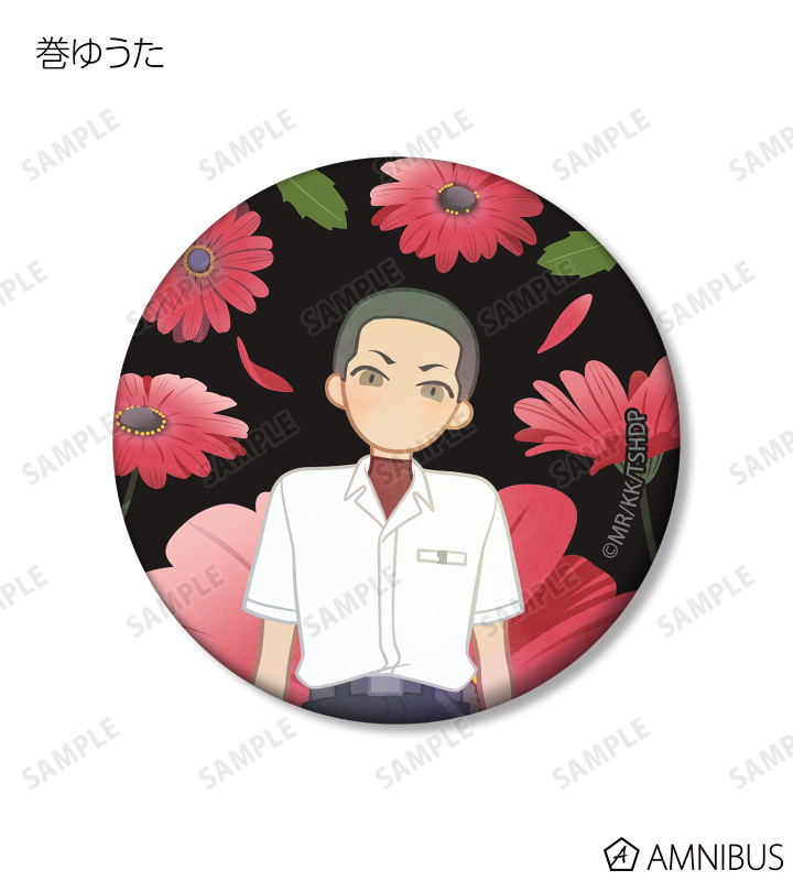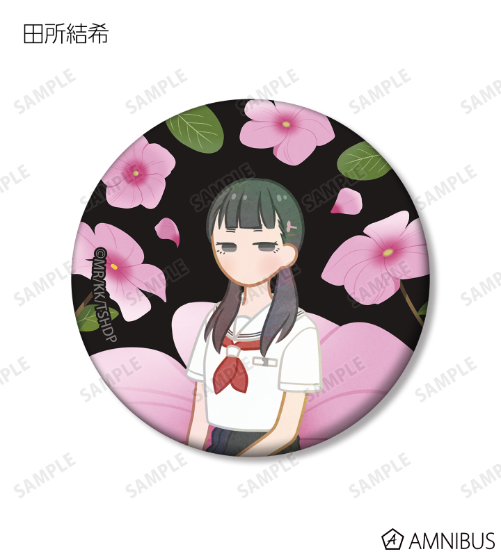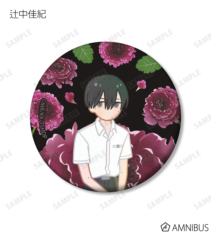 辻中佳紀、ヒカル、田中、山岸朝子、巻ゆうた、田所結希のイラストをボタニカルデザインに落とし込んで繊細なタッチで新たに描き起こし、マットな手触りの缶バッジに仕上げました。