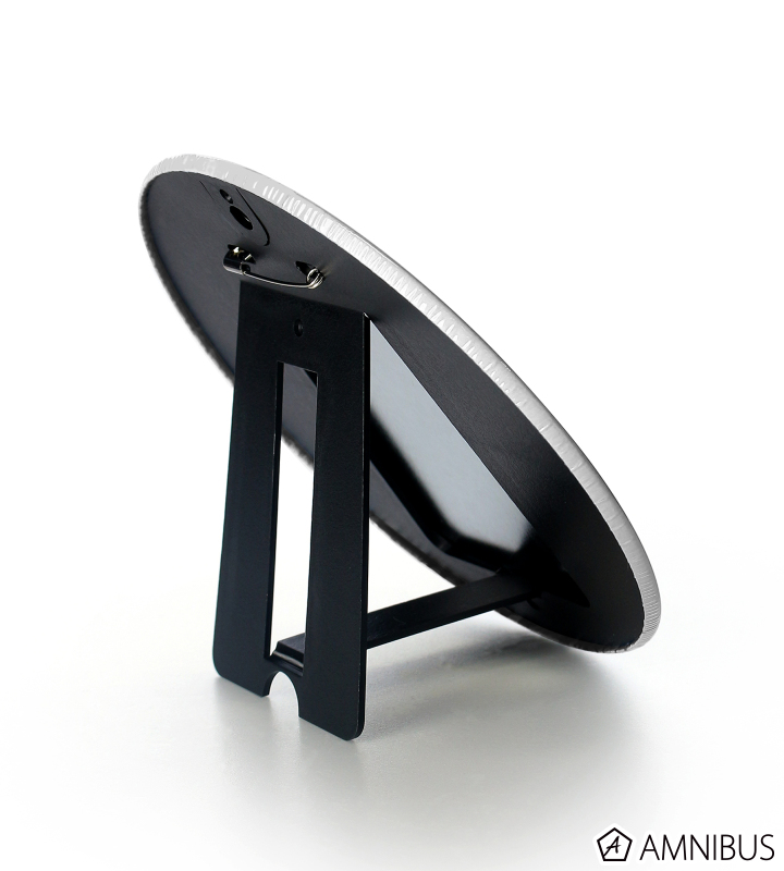 背面にはピンとスタンド、壁掛けパーツが付属し、立てかけたり壁に掛けてお使いいただけます。