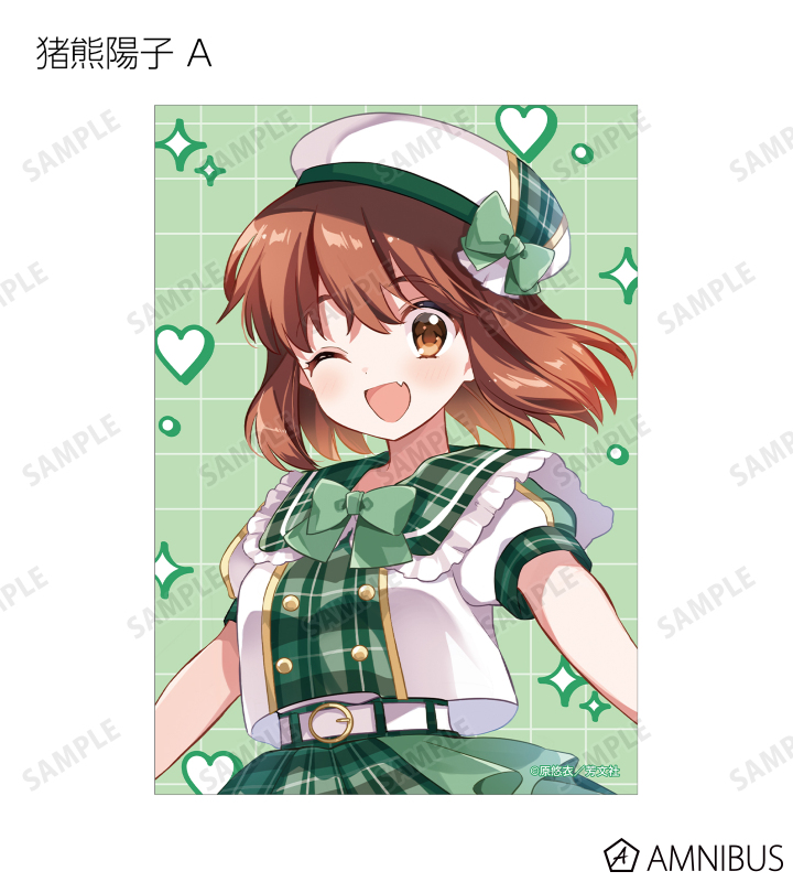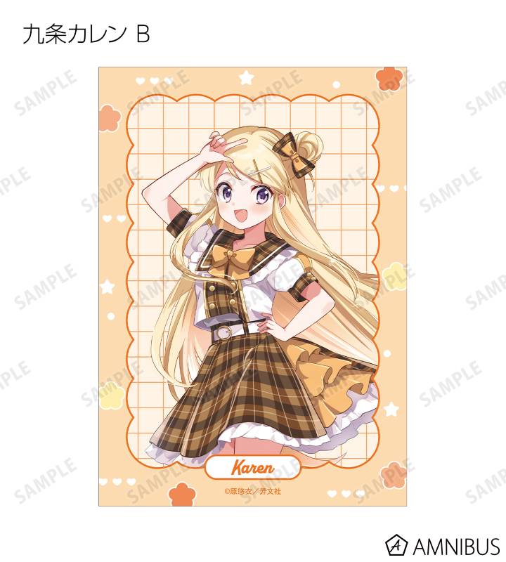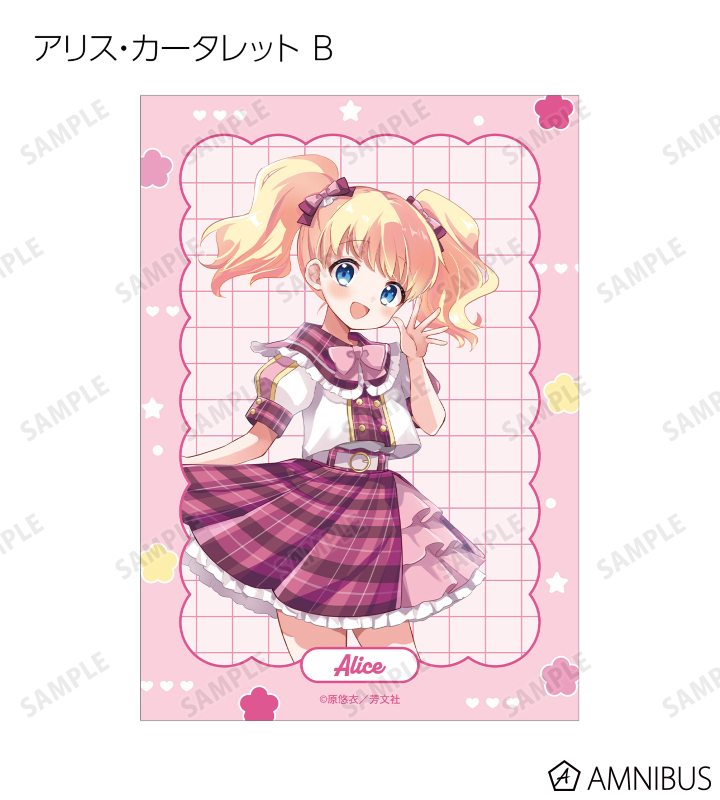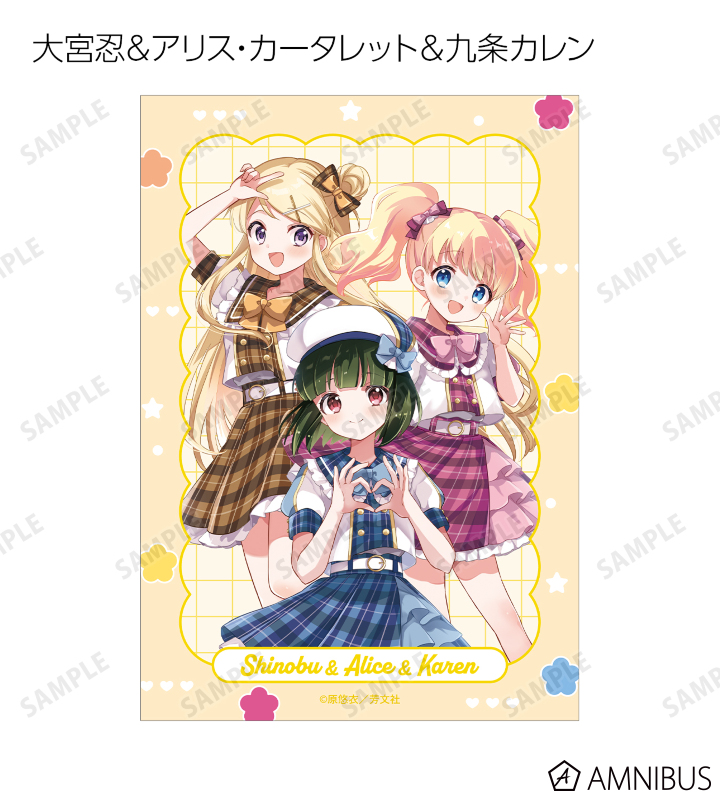 原悠衣先生描き下ろしイラストの大宮忍、アリス・カータレット、小路綾、猪熊陽子、九条カレンをブロマイドに仕上げました。