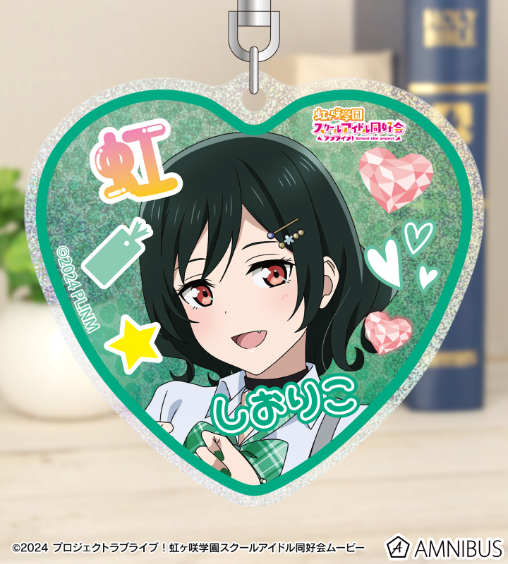 三船栞子の描き下ろしイラストをグリッター加工を施したアクリルキーホルダーに仕上げました。