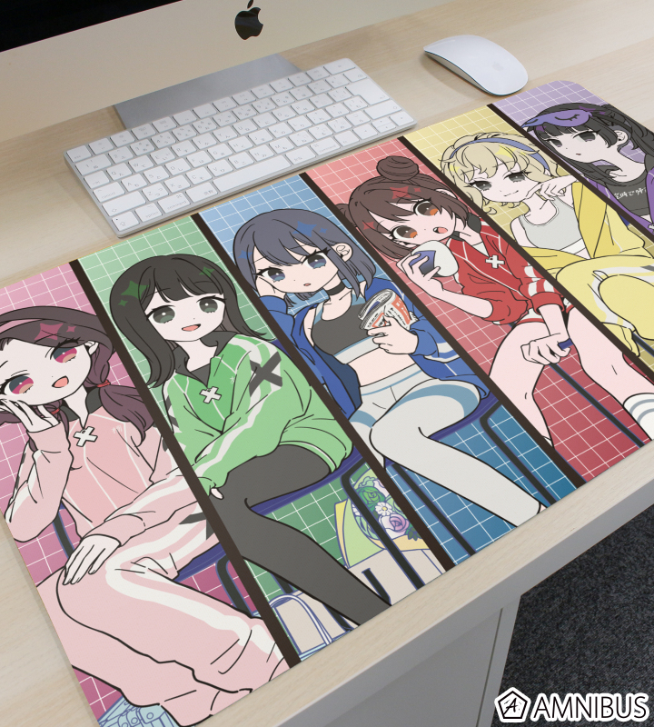 ユウヒ、セナ、ハナコ、クロエ、マナカ、アヤセの描き下ろしイラストをマルチデスクマットに仕上げました。