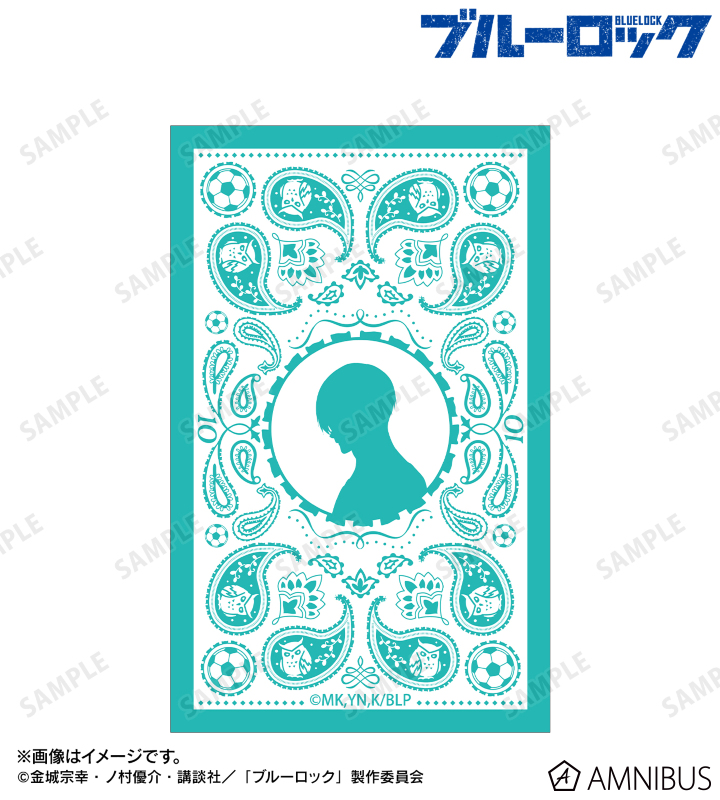 糸師 凛のシルエットをメインにフクロウのモチーフをペイズリー柄に落とし込んでバンダナ風デザインのイラストカードに仕上げました。
