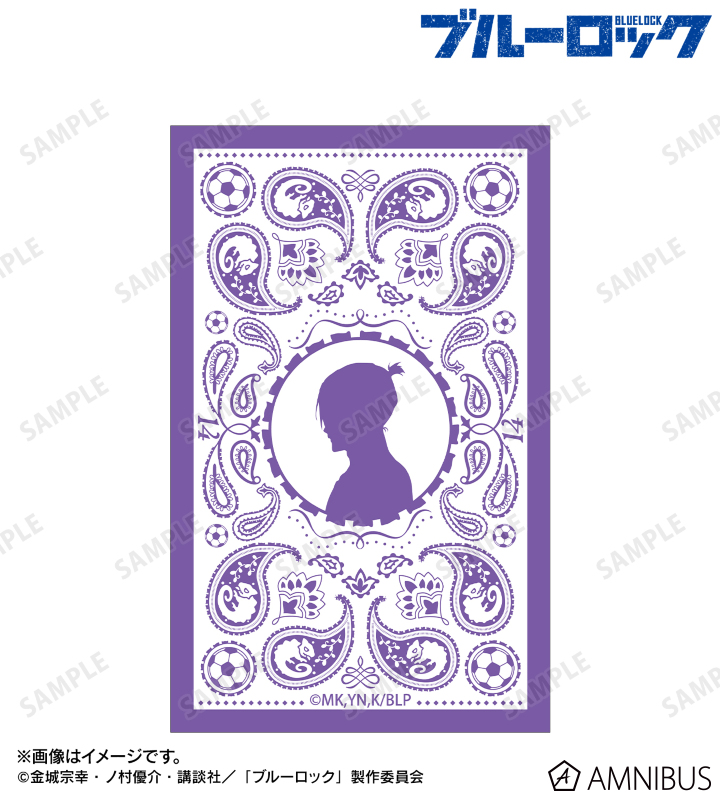 御影 玲王のシルエットをメインにカメレオンのモチーフをペイズリー柄に落とし込んでバンダナ風デザインのイラストカードに仕上げました。