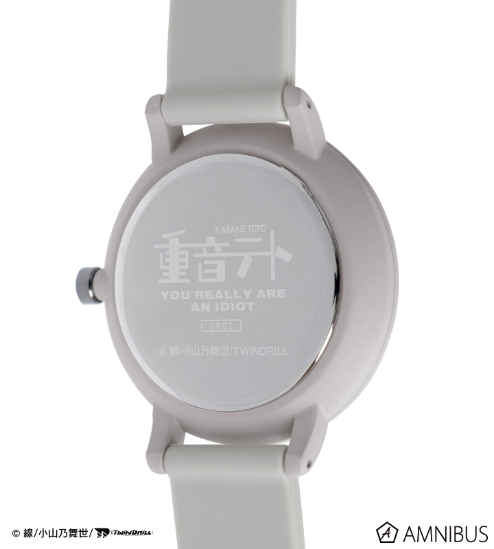 裏蓋には、重音テトのロゴや誕生日に加え、決め台詞の「君はじつに馬鹿だな」の英題表記「YOU REALLY ARE AN IDIOT」を刻印しています。