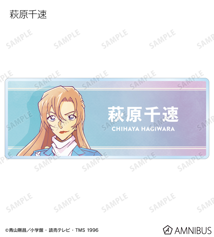 江戸川コナン、灰原哀、毛利蘭、世良真純、萩原千速、横溝重悟、松田陣平、萩原研二のイラストを新たなタッチで魅力的に表現し、アクリルネームプレートに仕上げました。