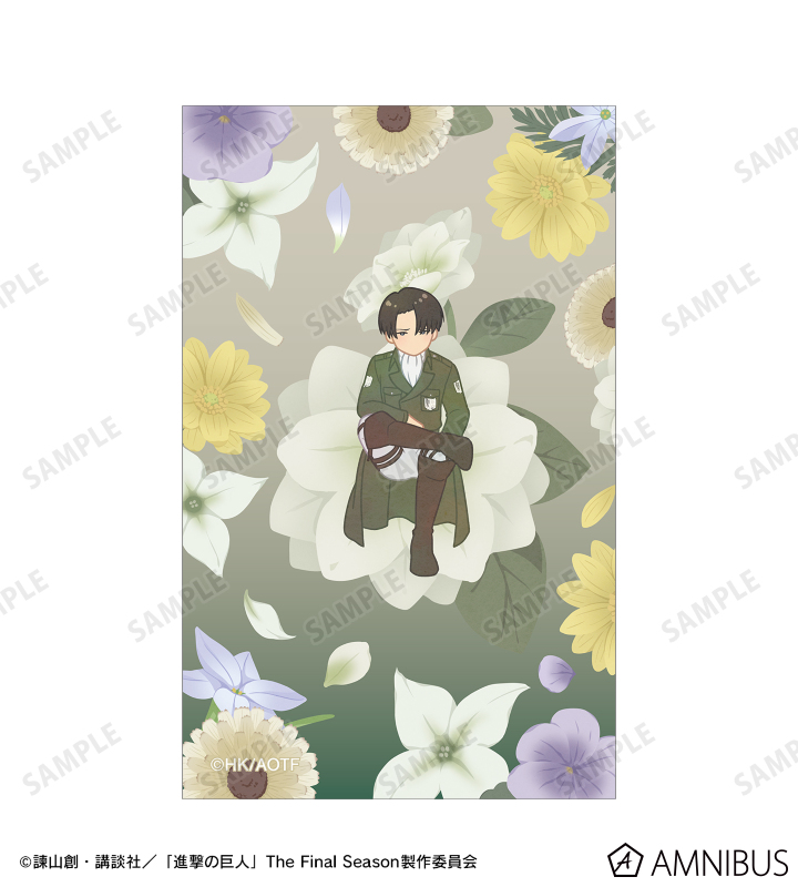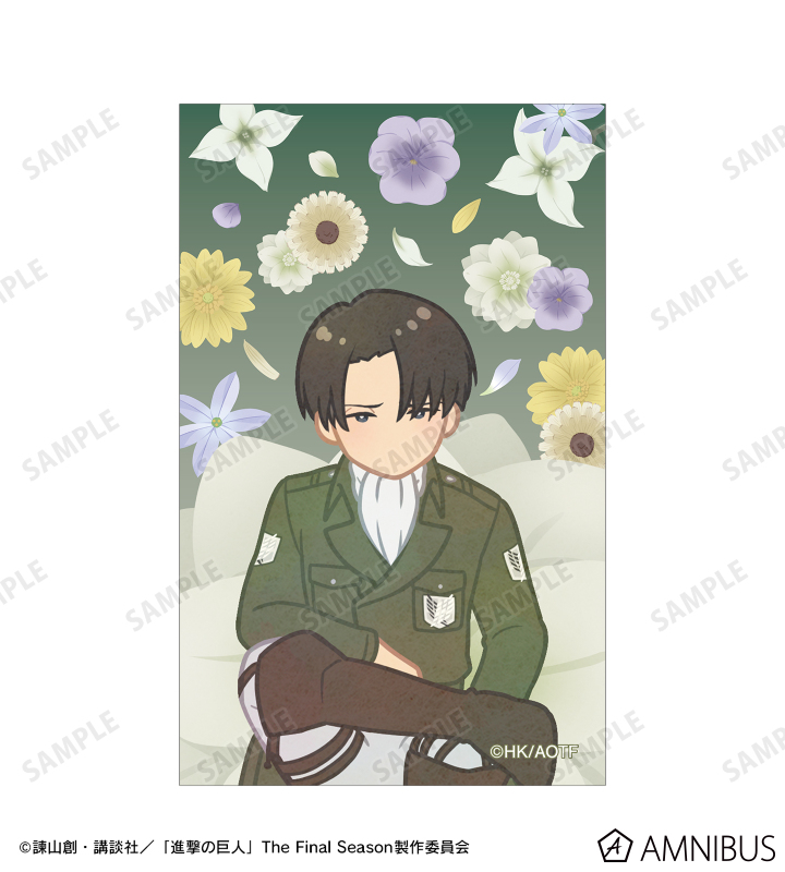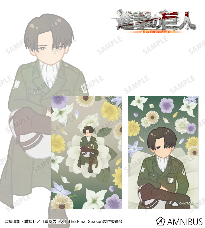リヴァイのイラストをボタニカルデザインに落とし込んで繊細なタッチで新たに描き起こし、イラストカード2枚セットに仕上げました。