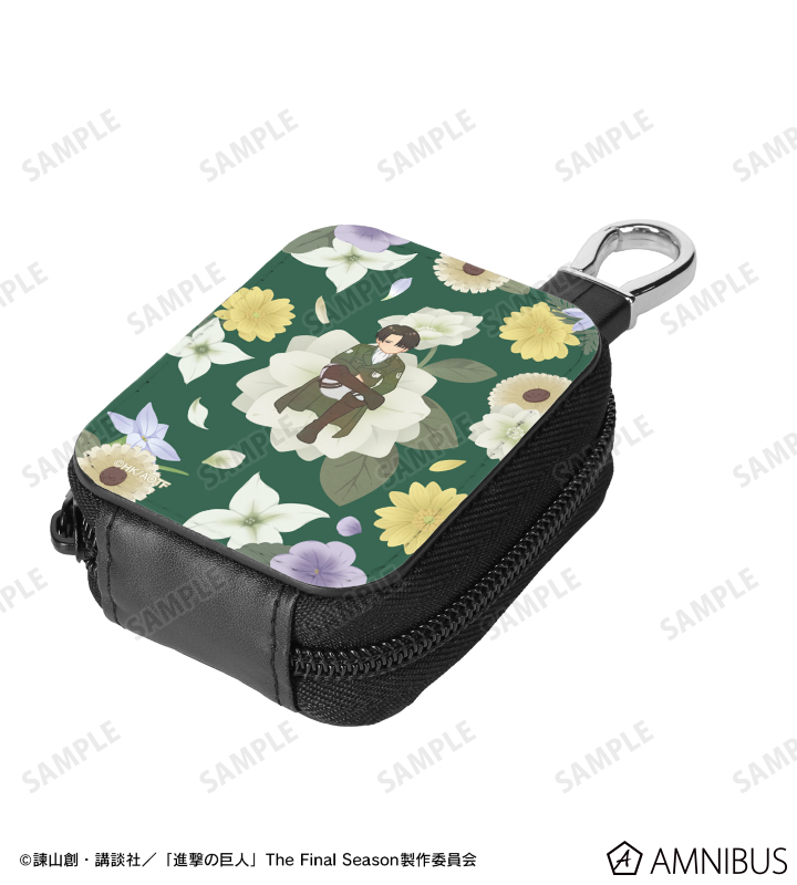 リヴァイのイラストをボタニカルデザインに落とし込んで繊細なタッチで新たに描き起こし、ミニポーチに仕上げました。