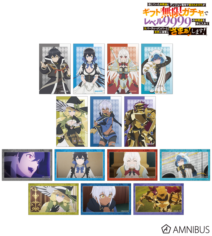 TVアニメ『信じていた仲間達にダンジョン奥地で殺されかけたがギフト『無限ガチャ』でレベル9999の仲間達を手に入れて元パーティーメンバーと世界に復讐&『ざまぁ!』します!』より、トレーディングイラストカードの登場です。