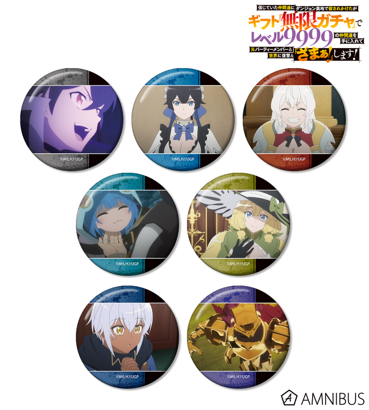 TVアニメ『信じていた仲間達にダンジョン奥地で殺されかけたがギフト『無限ガチャ』でレベル9999の仲間達を手に入れて元パーティーメンバーと世界に復讐&『ざまぁ!』します!』より、トレーディング缶バッジの登場です。