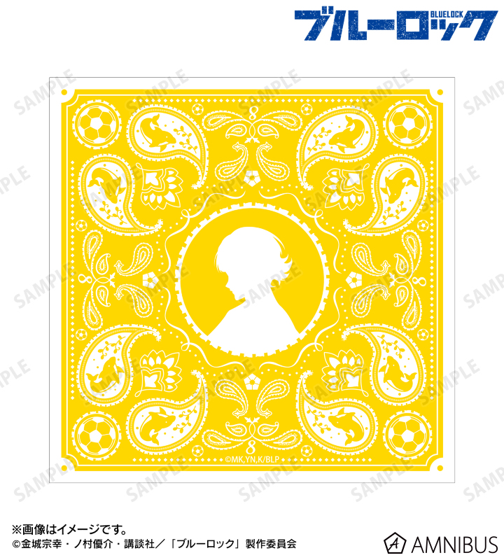 蜂楽 廻のシルエットをメインにイルカのモチーフをペイズリー柄に落とし込んでバンダナ風デザインのダイカットのステッカーに仕上げました。