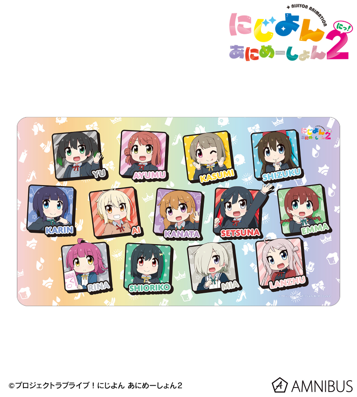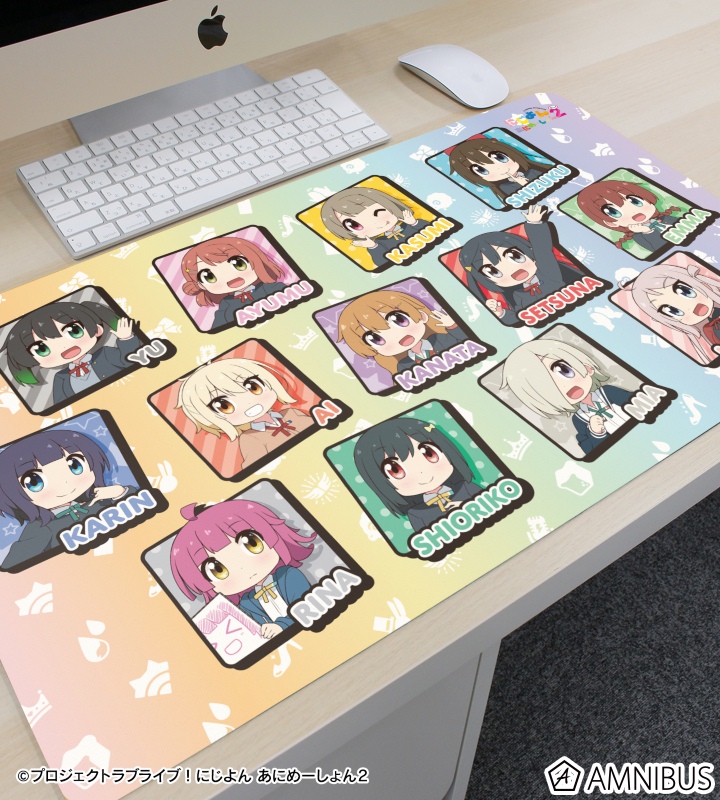 高咲 侑、上原歩夢、中須かすみ、桜坂しずく、朝香果林、宮下 愛、近江彼方、優木せつ菜、エマ・ヴェルデ、天王寺璃奈、三船栞子、ミア・テイラー、鐘 嵐珠のイラストをマルチデスクマットに仕上げました。