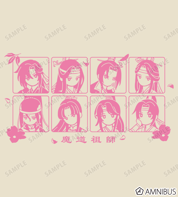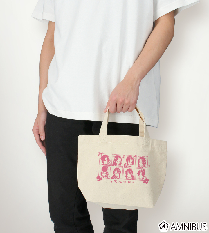 魏無羨、藍忘機、江澄、藍曦臣、金光瑤、金凌、藍思追、藍景儀のイラストをボタニカルデザインに落とし込んで繊細なタッチで新たに描き起こし、ランチトートバッグに仕上げました。