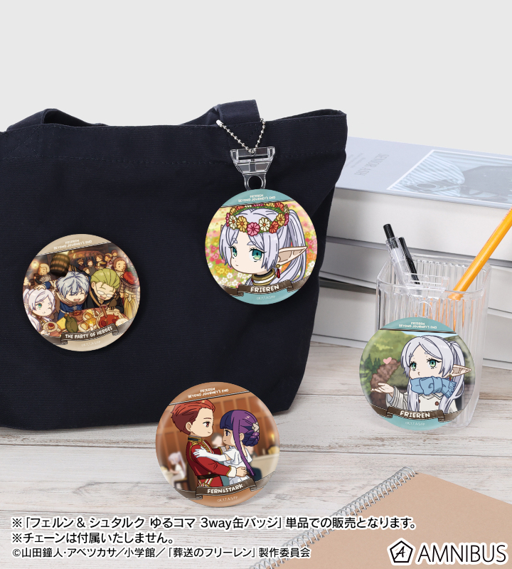 フェルン、シュタルクの印象的なシーンをそのままデフォルメで再現し、3WAY缶バッジに仕上げました。