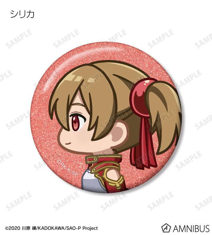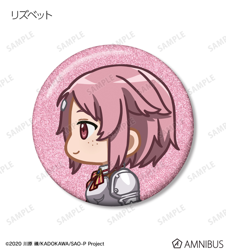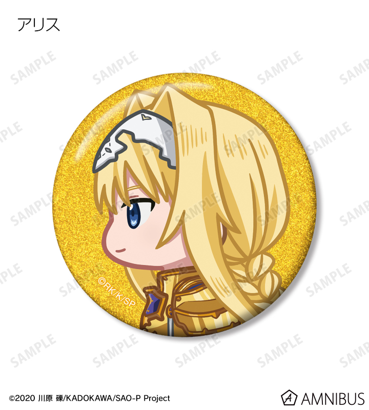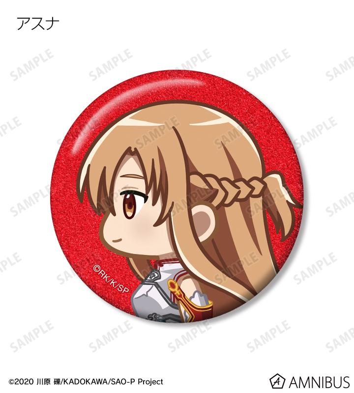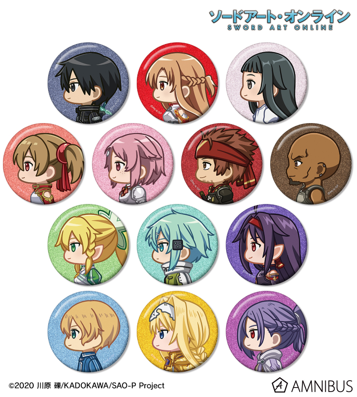 キリト、アスナ、ユイ、シリカ、リズベット、クライン、エギル、リーファ、シノン、ユウキ、ユージオ、アリス、ミトが歩いているちびキャラを新たに描き起こし、グリッター加工を施した缶バッジに仕上げました。