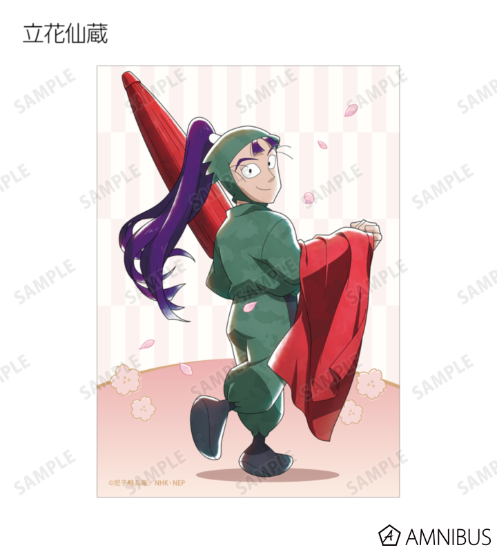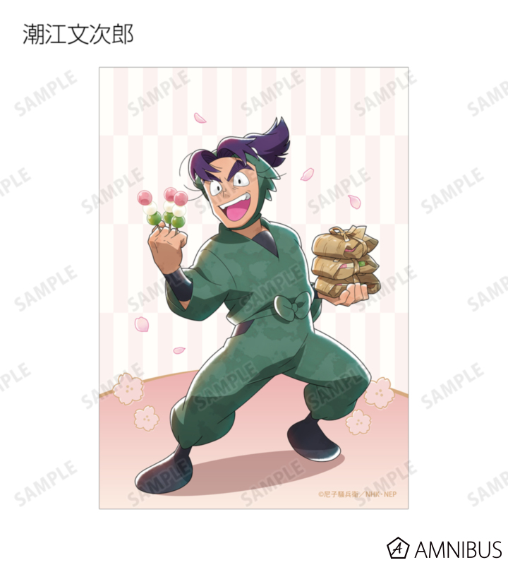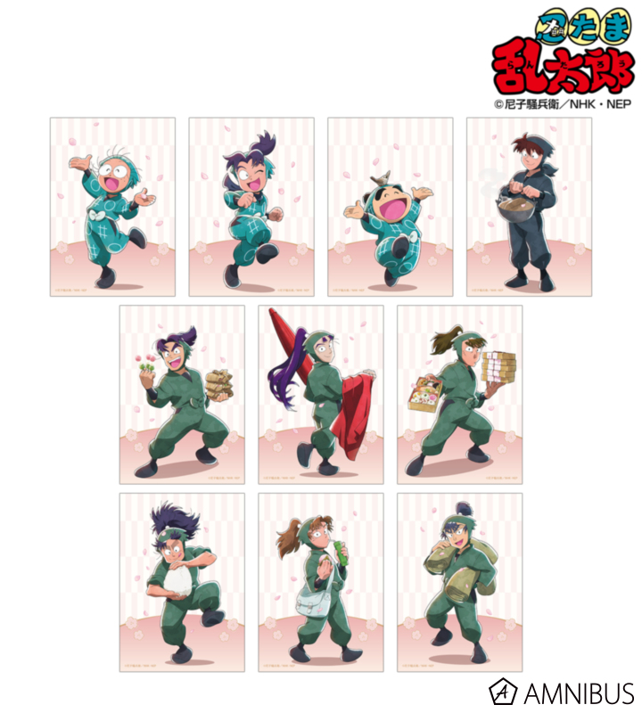猪名寺乱太郎、摂津のきり丸、福富しんベヱ、土井半助、潮江文次郎、立花仙蔵、中在家長次、七松小平太、善法寺伊作、食満留三郎の描き下ろしイラストをブロマイドに仕上げました。