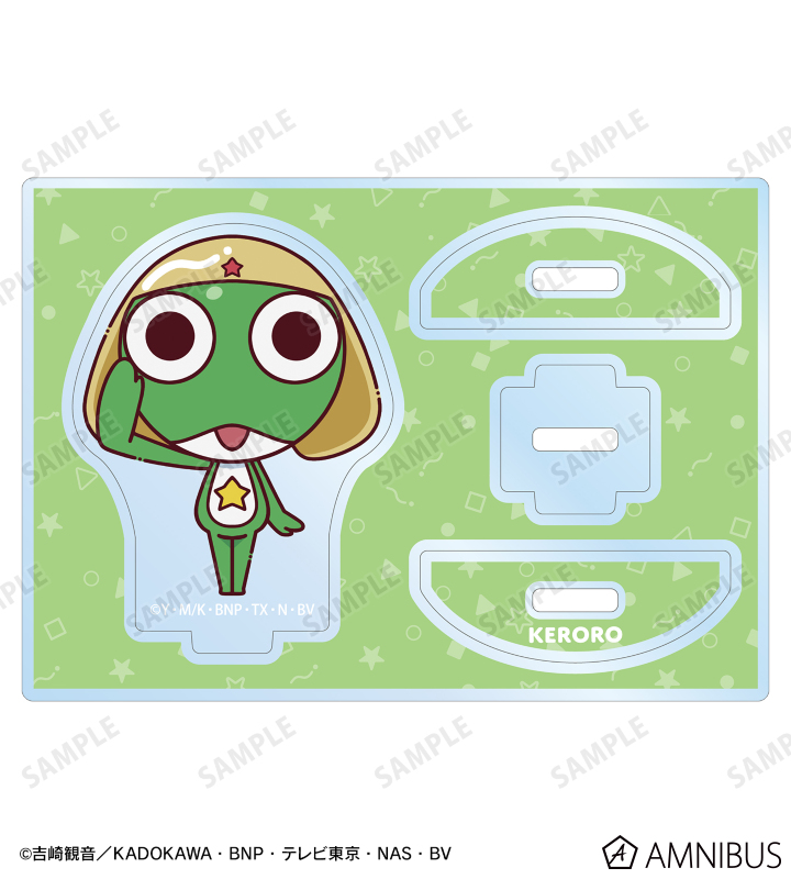 ケロロがちょこんと立っているちびキャラを新たに描き起こし、ゆれるアクリルスタンドに仕上げました。
